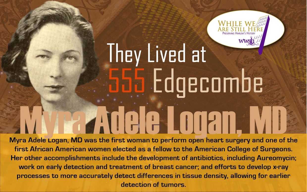 Myra Adele Logan, MD was the first woman to perform open heart surgery and one of the first African American women elected as a fellow to the American College of Surgeons. Her other accomplishments include the development of antibiotics, including Aureomycin; work on early detection and treatment of breast cancer; and efforts to develop x-ray processes to more accurately detect differences in tissue density, allowing for earlierdetection of tumors.