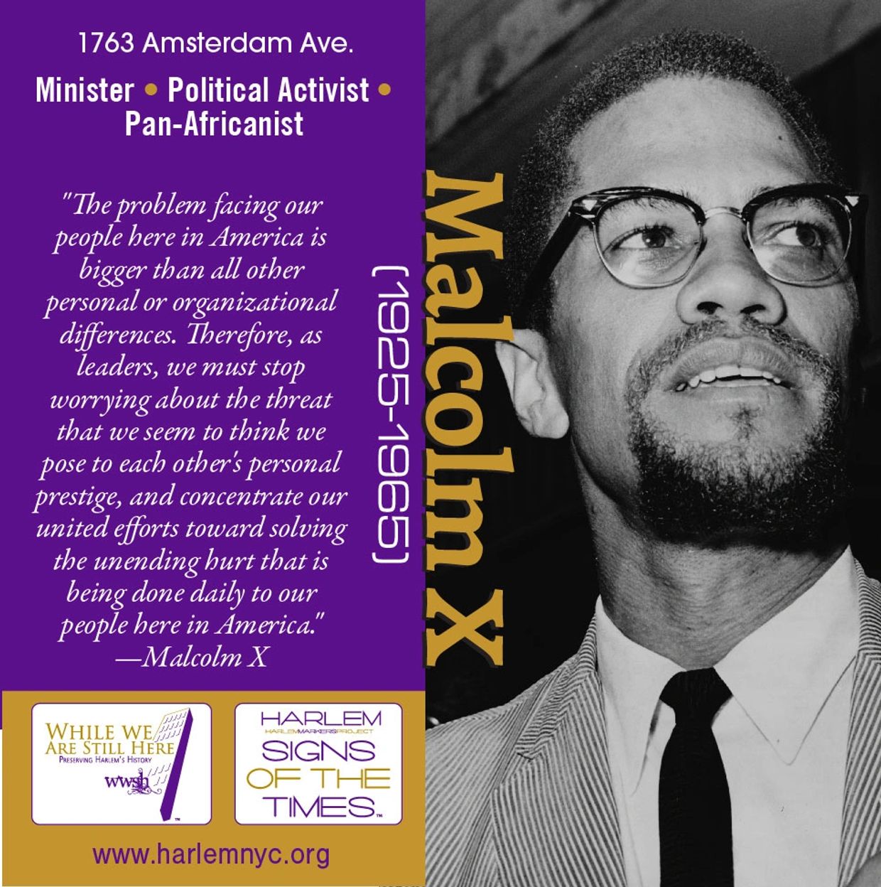 Malcolm’s presence can still be felt in Harlem, where he sang the praises of Africa and her descendants. His courageous words still resound in the community, where he rallied and organized against oppression. His example of how to lead a righteous, loving, and purposeful life still resides within the hearts of all who were motivated, lifted up, and inspired by his greatness.