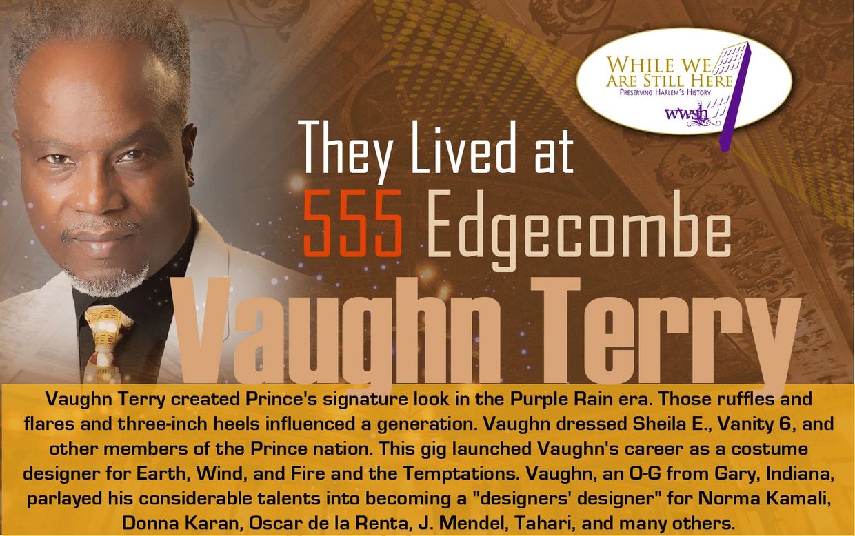 Vaughn Terry, a world-renowned costume designer, came to fame in the 1980s, designing for artists such as Earth, Wind, & Fire, Natalie Cole, and Bobby Brown. Terry and his design partner, the late Louis Wells, traveled the world styling and designing costumes for some of the biggest names in music. Most notable of Terry’s clientele was Black Music icon Prince. Terry and Wells designed Prince’s world-famous lustrous purple suit worn in his 1984 American rock musical drama.