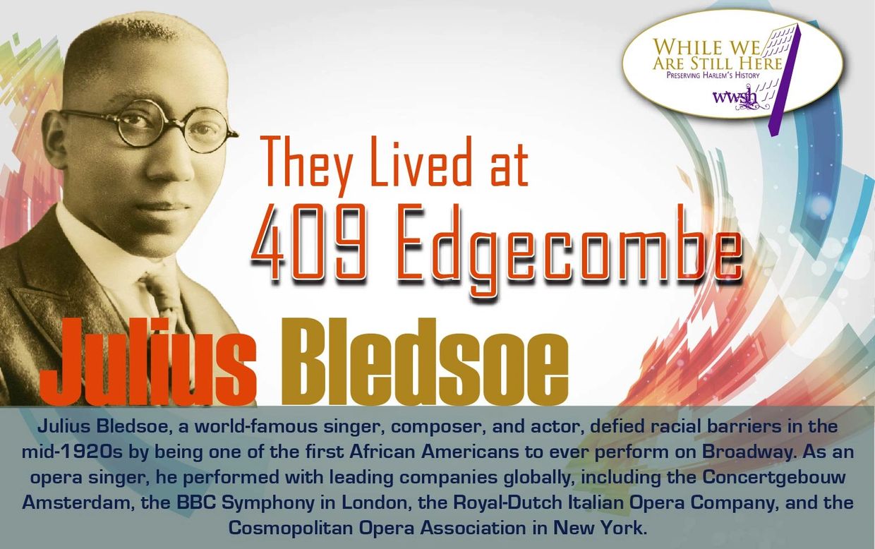 Julius Bledsoe, a world-famous singer, composer, and actor, defied racial barriers in the mid-1920s by being one of the first African Americans to ever perform on Broadway.